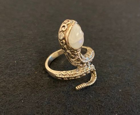 However, the most common meaning of a snake ring is eternity, which is why Prince Albert created a ring for Queen Victoria in 1840. In other cultures, the snake ring symbolizes eternal love, and the Ouroboros, a symbol of time and eternity, is also represented by the snake. We have this in a Size S.