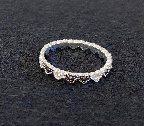 This beautiful ring features small alternating black and white heart shaped diamante's that form a crown shape. In 925 Silver this ring is fit for a queen! We have this in a Size P.