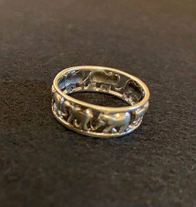 The elephant is generally considered a symbol of good luck and the animal is a symbol of good fortune. Elephant jewelry is commonly believed to bring luck to the person who is wearing it and makes a great gift for wishing someone luck with something. The 925 Silver ring is in a size T and V.