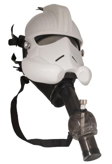 Introducing the Chongz 'Storm Trooper' Gas Mask Bong, one of the new space age acrylic Chongz. The 'Storm Trooper' is a fun and unique party piece! Experience an intense smoke with one of these; holding all the gas within the mask. Release valve to helps a rush of air get in. Removeable Waterpipe to ensure an easy clean. Face/ mask piece made out of silicone. Adjustable to the headsize too! Availible in 4 different colours Chongz products are high quality acrylic, made with superior materials. Don't be fooled by cheap imitations, go for a high quality product brought to you by Kashmir, Grimsby. We have 23 years experience in bringing you the very best in smoking requisites.