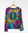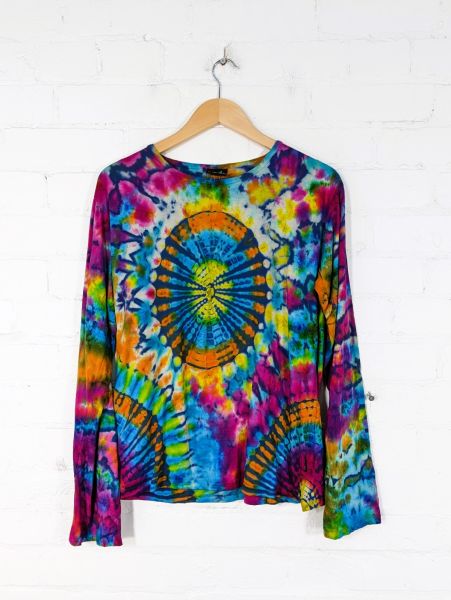 These shirts are not mass-produced factory-made goods. They are made by small scale producers, sometimes at home and details are often hand sewn or hand printed. Made of 100% stretchy cotton in Nepal. Beautiful and bright this long sleeved top would look great in any wardrobe. Choice in two sizes XL or ML.