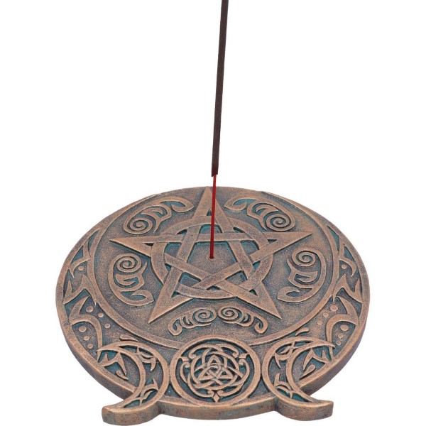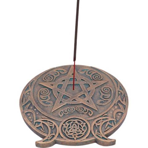 Cast in the finest resin before being given a bronze finish, this Triple Moon Fragrance Incense Burner is perfect for any wiccan lover. Shaped like the triple moon symbol, this piece lays on a flat surface and has a central hole which is ideal for holding your favourite incense sticks. Apox 13.7cm