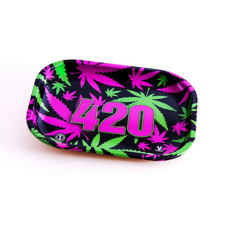 The V Syndicate 420 Metal Rolling Tray is a durable, high-quality metal tray with a smooth, easy-to-clean surface and raised, rounded edges to prevent material waste.