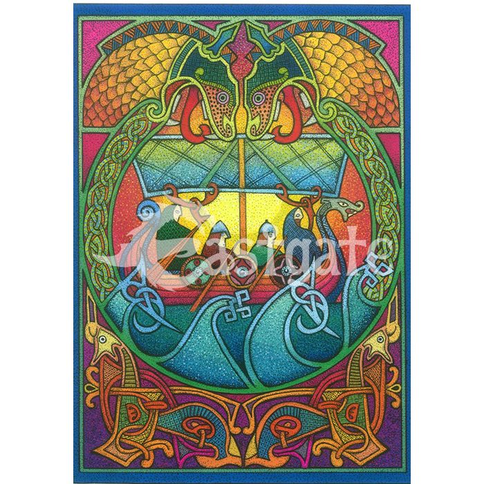 Set sail with the spirit of the Norse! The Viking Ship Card features a bold and colourful illustration of a classic Viking longship, captured in dynamic detail by celebrated artist Courtney Davis. Rich in colour and movement, this striking card is ideal for any occasion, with a blank interior ready for your personal message. Measuring approximately 12.5cm by 17.5cm and paired with a plain blue envelope, it’s a unique and powerful way to share your thoughts.