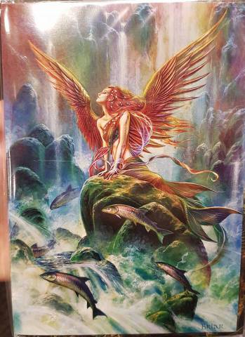 Below and around her, enchanted fish drift weightlessly through water and air alike, enhancing the scene’s dreamlike, elemental balance. The phoenix mermaid is a symbol of duality—rebirth through fire, serenity through water—radiating both grace and raw power.