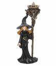 A detailed witch holds a twisted, wooden staff on this amazing backflow incense cone burner. To use, simply place an incense cone into the golden dish and watch as smoke swirls from the staff's branches