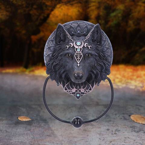 Wolf Moon Door Knocker £19.50 Beautifully crafted black Wolf Moon Door Knocker. Cast in the finest resin. Expertly hand-painted. 1 Keyhole hook on reverse for hanging. Enter Quantity Weight: 1 kgProduct category: Giftware