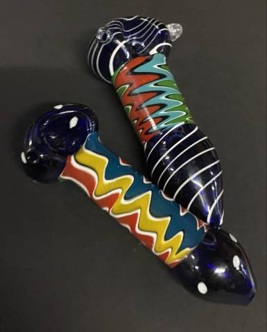 These glass pipes ensure a smooth and unadulterated flavor during the smoking process. These beautiful pieces have a variety of swirly colours making them stand out like a piece of art. Design will be chosen at random.
