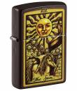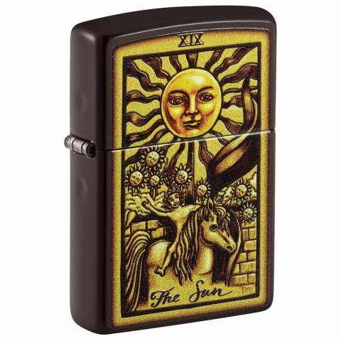 This classic Brushed Brass lighter features a Color Image representation of The Sun Tarot card, a harbinger of luck and joy, so you can carry good fortune, harmony and happiness with you wherever you go. Comes packaged in a gift box. For optimal performance, fill with Zippo lighter fuel.